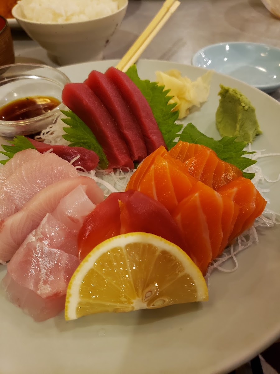 The only thing difficult here was to decide what to order. Albacore is my go-to for an appetizer, and it was delicious. I ordered the sashimi dinner and loved everything except the red Tuna. Portion size of the salad was very generous. Not pictured is the Miso soup, standard and tasty. Great dining experience, food was wonderful, and we will definitely return.
